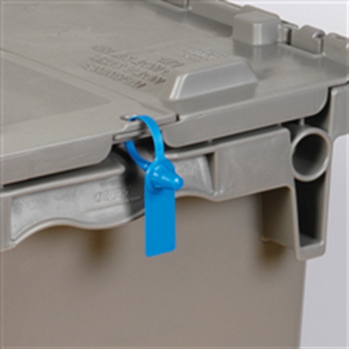 Fixed length security seal designed specifically to secure totes used to transport merchandise from one location to another. Manufactured as “twin†sets with identical numbers since totes require two seals to be properly secured.