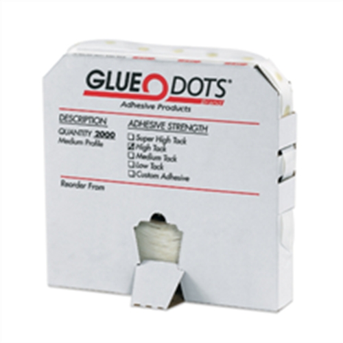 Medium Profile Glue Dots are ideal for uneven surfaces.